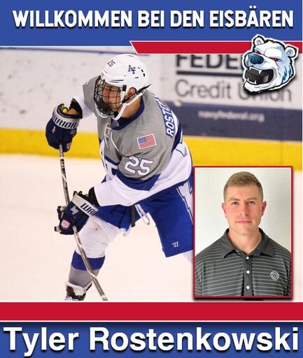 Nächste positive Nachricht für die Eisbären. Mit Tyler Rostenkowski haben die Eisbären ihren ersten Neuzugang für die kommende Saison. Der 27-jährige US-Amerikaner ist fortan in der US-Base in Ramstein stationiert und wird ab sofort für die Eisbären auflaufen.