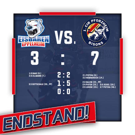 Ein anderes Drittel sah man nach der Pause. Das Spiel wurde etwas ausgeglichener, wobei die Dominanz weiterhin bei den Bisons liegen sollte. Doch diese konnten dieses Drittel für die Vorentscheidung nutzen, bis zur Spielhälfte schraubten die Bisons das Ergebnis auf 2:5 hoch, ehe Kapitän Gottschalk in Überzahl Kosmetik gelang (30.). Mehr sollte dies am Ende nicht sein, denn ein Doppelschlag zum Drittelende brachte mit dem 3:7 bereits eine verdiente Führung für Pforzheim.